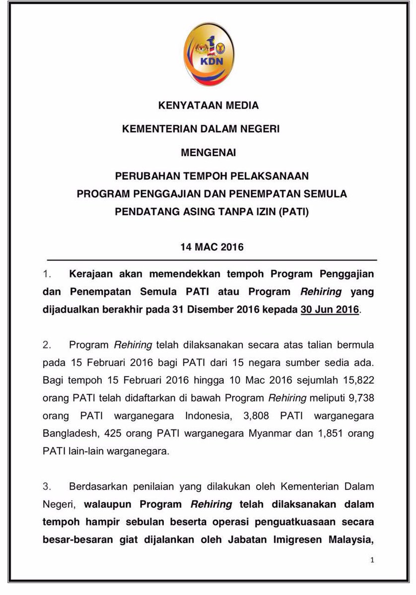 Program rehiring yang dijalankan jabatan imigresen malaysia bertujuan memberi permit kerja sah kepada pati bagi memenuhi sektor pekerjaan yang dibenarkan iaitu perkilangan, pembinaan, perladangan, pertanian dan perkhidmatan. Supporting letter from malaysia hindu sangam, malaysia buddhist society, malaysia youth buddhist society, malaysia gudwara council, ministry of human resource. Program rehiring yang dijalankan oleh jabatan imigresen malaysia (jim) dilaksanakan bagi memberi permit kerja kepada pati secara sah bagi memenuhi sektor pekerjaan yang dibenarkan iaitu sektor perkilangan, pembinaan, perladangan, pertanian dan perkhidmatan. Portal jabatan imigresen malaysia or immigration malaysia|work permits. Known as jabatan imigresen malaysia in malay term.